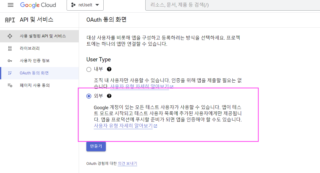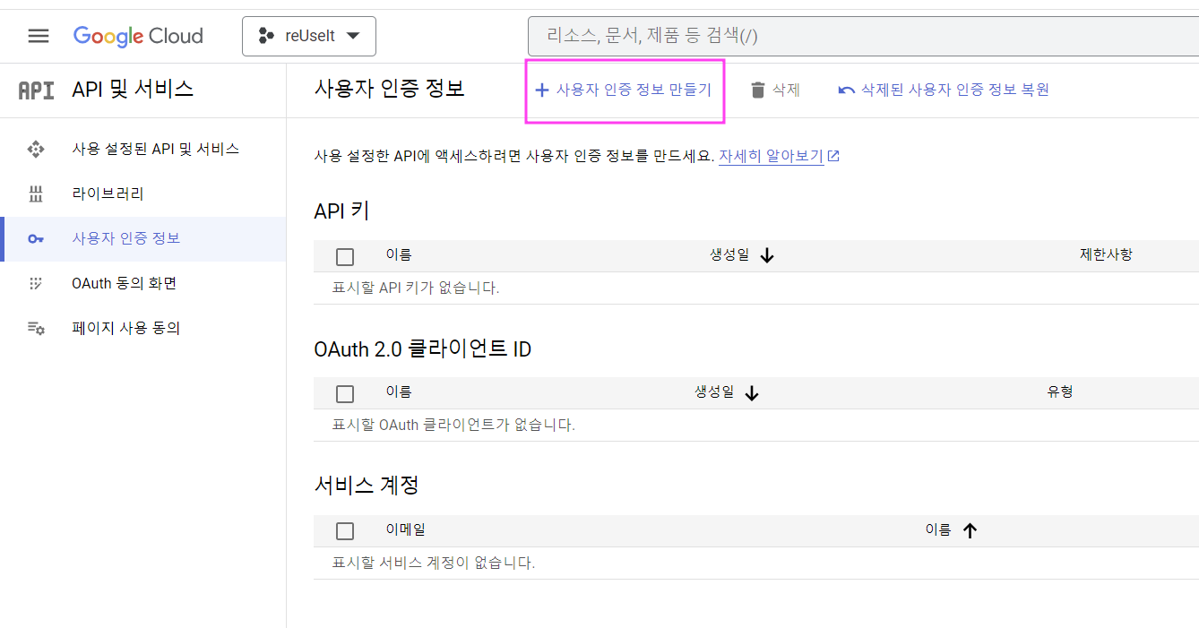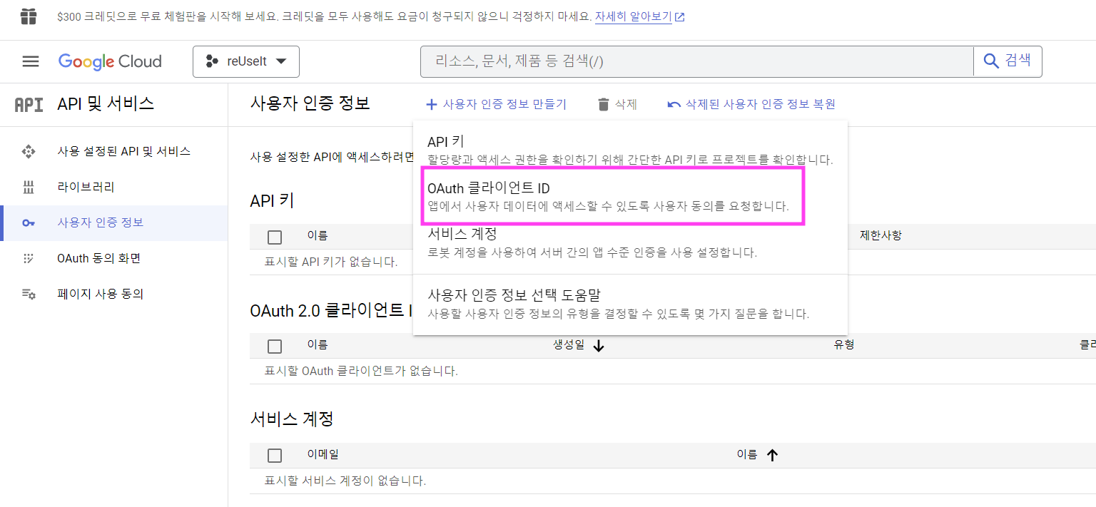생성한 뒤에 build.gradle 파일에 oauth 의존성 주입