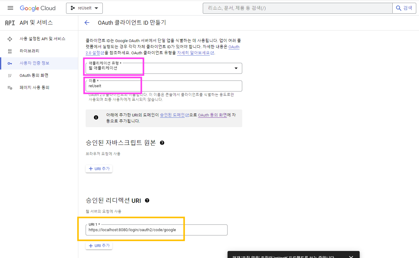 spring.security.oauth2.client.registration.google.client-secret= [아까 발급받은 비밀번호 값]