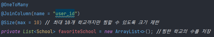 애초에 DB에 저장하는 게 아니라 그냥 로컬(?)에만 담겨있는 favoriteSchool 변수에 무결성을 유지하면서 잘 작동할 수 있는지도 미지수긴 하다.
