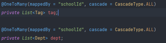 - 아래의 코드 하나만으로 tag, dept의 정보를 모두 각각의 테이블에서 조회돼서 다른 school 테이블의 필드들과 함께 sch에 저장이 되었다.