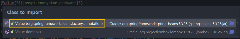 spring에서 제공하는 Value를 import 해야 하는 것이었다..!! (어이없는 실수,,ㅎㅎ)