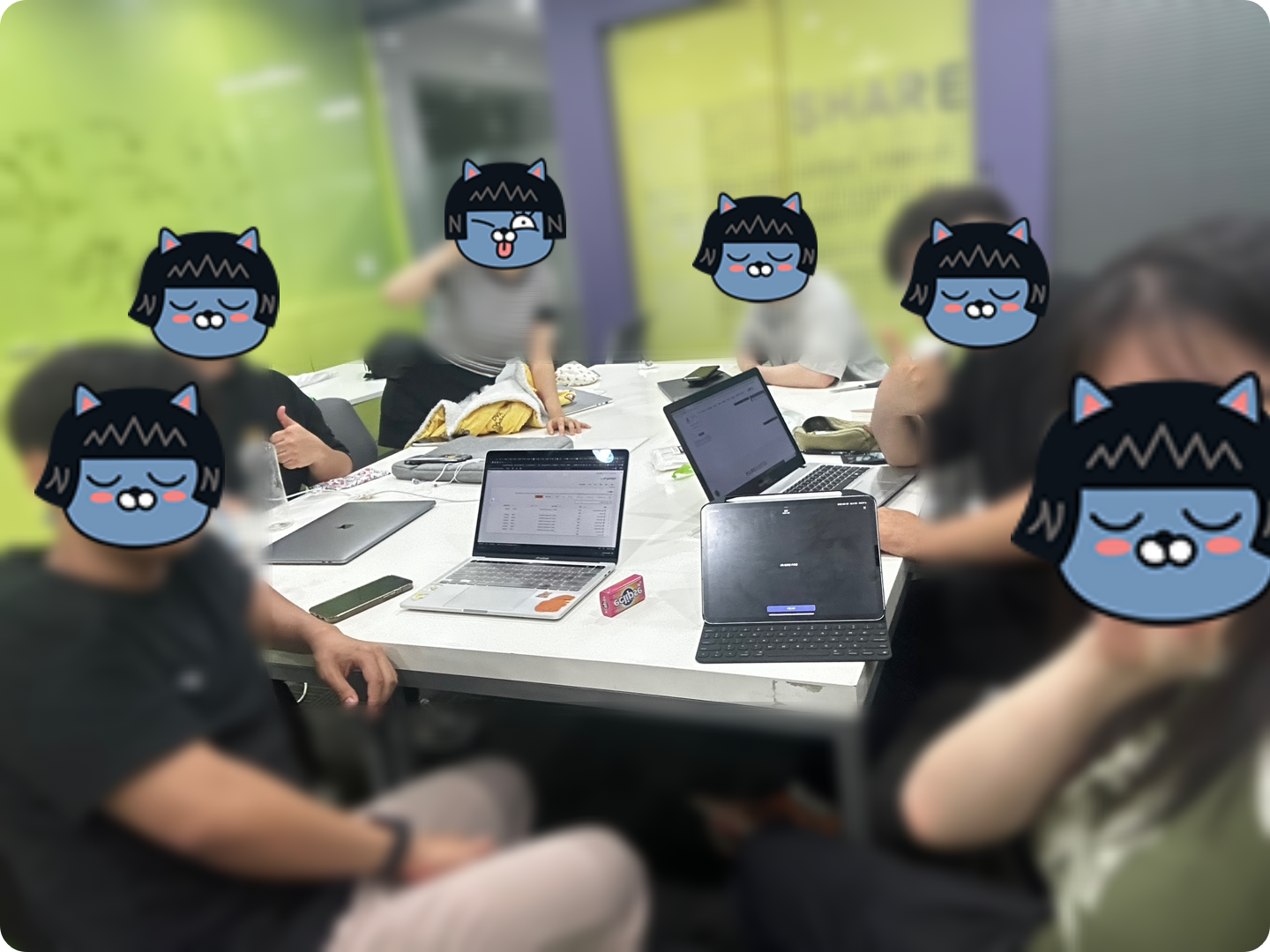 일반적인 개발 용어가 아니라 인터넷적인(?) 용어가 대부분인 느낌...!! - 예비 개발자 인생 2년이 넘어가는데 처음 해보는 이 중요한 관경을 놓치고 싶지 않아서 열심히 참여했다. (한 대의 컴퓨터로 진행하니 나는 그냥 열심히 모니터 쳐다보기ㅎㅎ)