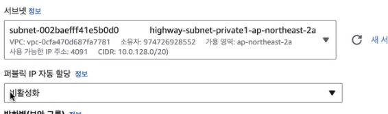 - 퍼블릭 IP 자동할당에서 '비활성화'로 되어 있다는건 외부에서의 접근을 막겠다는 것.