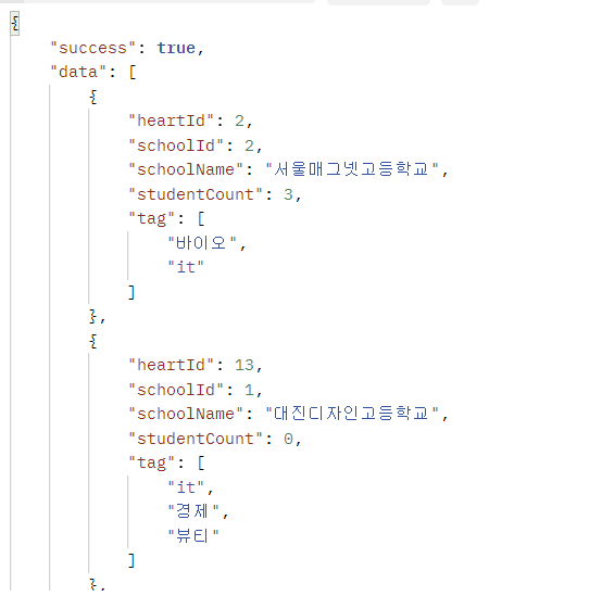 🔺 여기서 포인트는 같은 schoolId를 가진 정보는 하나의 DTO에(객체에) 담겨서 반환되어야 한다.